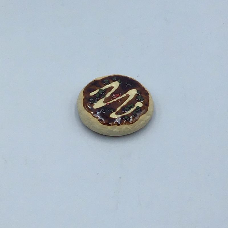 The Size: Mino ware Okonomiyaki Φ3.9×1cm(H) Takoyaki Φ3.7×2×2cm(H) The Size: Arita ware Mayonnaise 5.3 x 2.6 x 2.2 cm Okonomiyaki Sauce 5.3 x 2.6 x 2.2cm