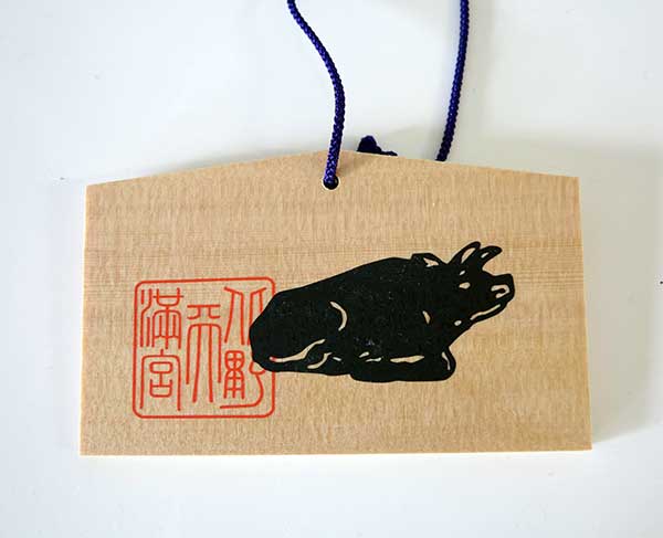 Ema are most commonly translated as "votive plaques" in English. On one side of the wooden board will usually be a picture, and on the other, the person writes their prayer or wishes.