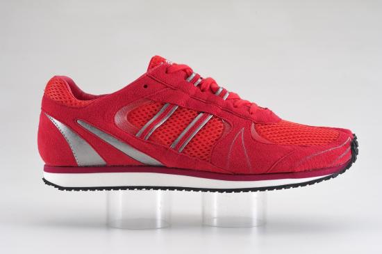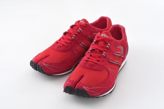 Lafeet tabi sneakers in a striking red color. The uppers of these stylish shoes are made from artificial leather suede and synthetic fibers, the soles are EVA sponge and synthetic rubber.