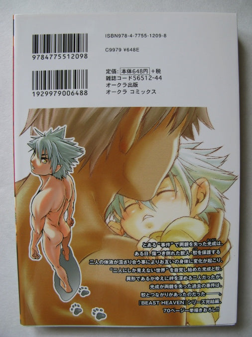 Beast Heaven is a gay manga novel by the manga artist, Hibakichi. It is a modern space-Gothic story in seven chapters about an orphaned boy who finds, and grows up with, an otherworldly tigeresque beast-boy. Features a wide range of scenes from the intensely cutesy to over-the-top erotic alien grotesqueness - including even scenes of underwater sex by aquarium creatures! A gay manga trip you won't forget!