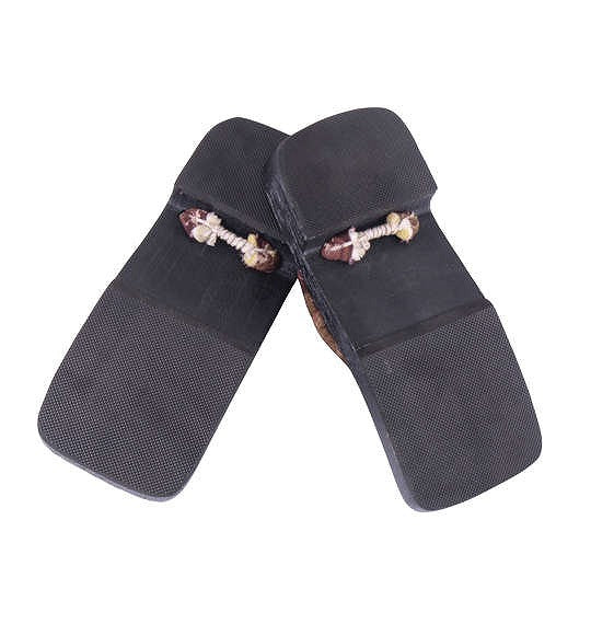 These traditional men's and women's geta have a paulownia wooden base. The thongs are made from polyester in a traditional pattern.