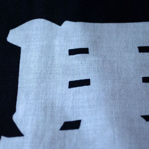 This all cotton noren curtain from Kyoto spells out 男湯 in Japanese characters. It means "male bath" and is placed at the entrance to the male section of a Japanese onsen or public bath.