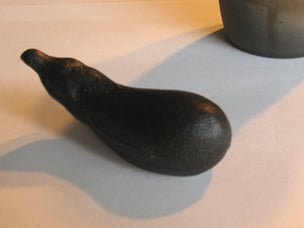 A small, very simply styled piece that is nevertheless instantly recognizable. With the least 'entertainment' value of the bunchin paperweight lineup, the eggplant exudes almost an air of mystery. The perfect piece with which to unobtrusively grace that special space or complement that difficult-to-please objet.