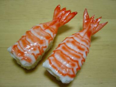 Temaki ebi (prawn) replica sushi.
