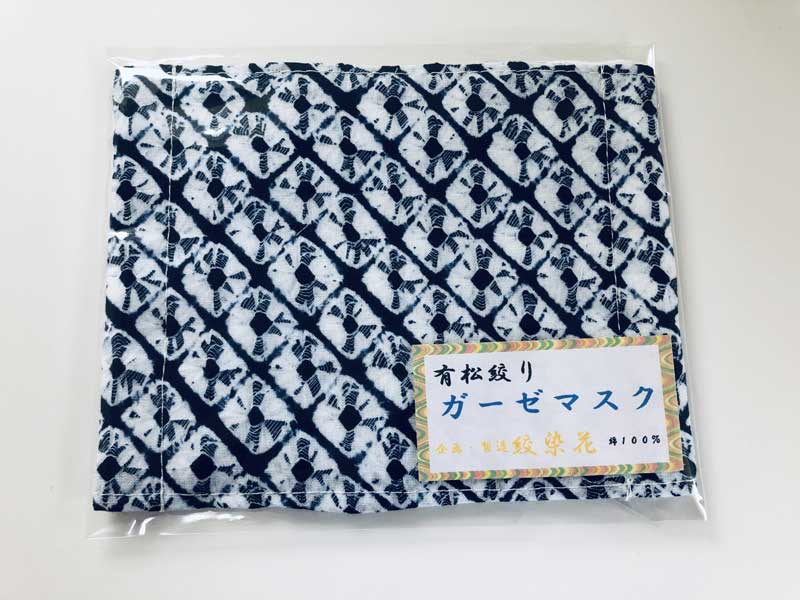 This is a classic, blue and white patterned gauze mask in Arimatsu shibori.