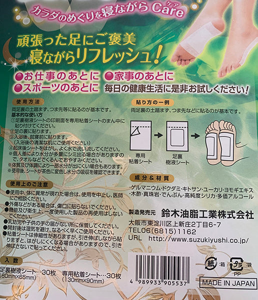 Ingredients: Germanium (effective for its antibacterial properties), Houttuynia cordata, chitosan, eucalyptus, mugwort extract, wood vinegar, pearl rock, starch, high-purity silica, polyhydric alcohol.