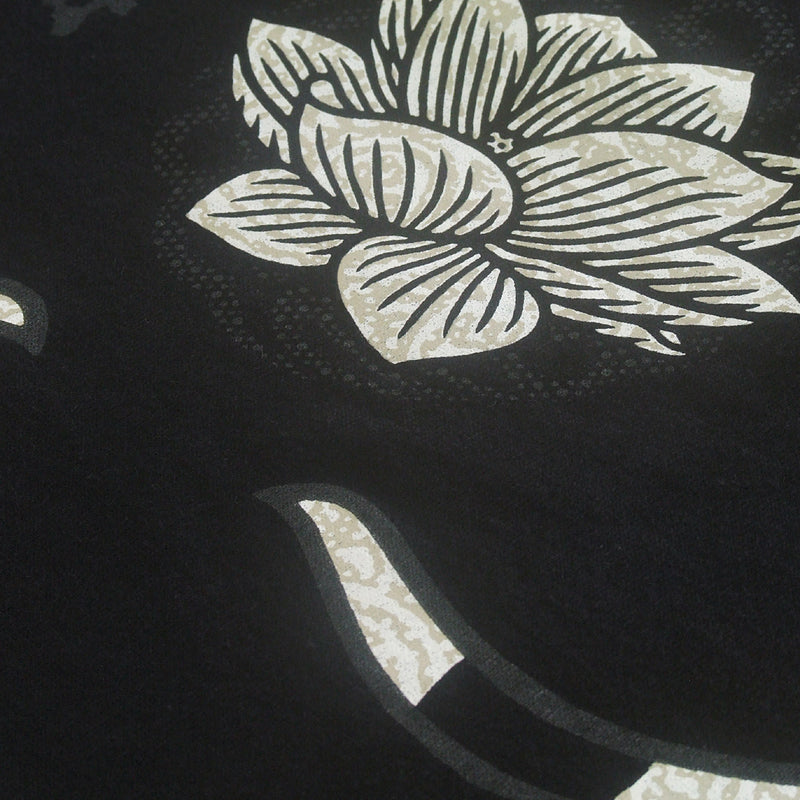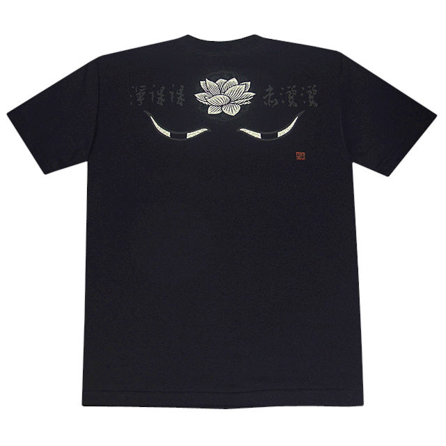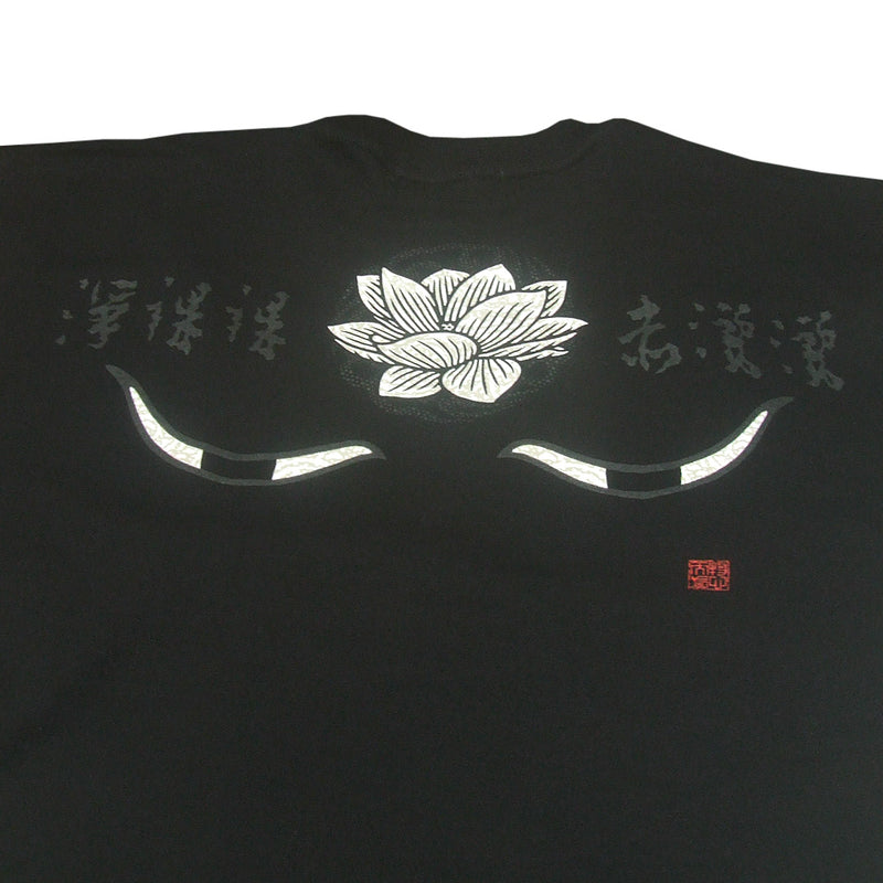 This showy design is Lotus flower and Buddha eyes. Poetry on the back means Naked human mind which throws away all of restraints of life. The stamp on the front says that if we cleanse ourselves mentally, we can feel all things in this world pure and innocent.