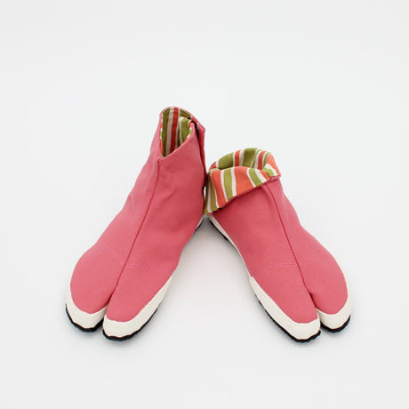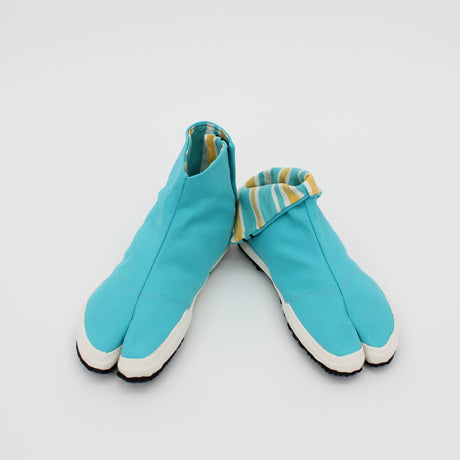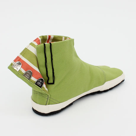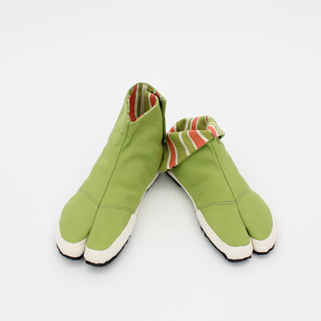 The outer material is cotton as is the inner lining. The kohaze fasteners are brass. The soles are natural rubber.