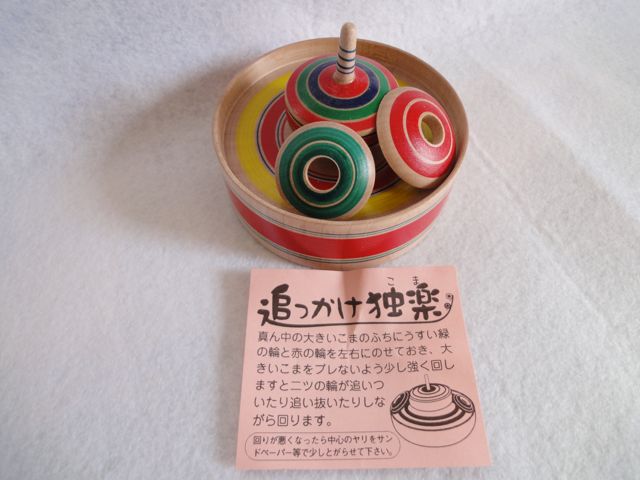 Japanese Chasing Koma - Spin the big top with the string and the two little rings will chase each other.