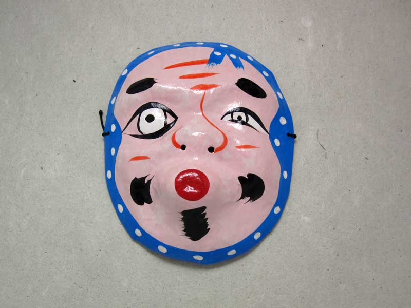 Hyottoko (Hi otoko) his face is contorted because his job is to blow through a bamboo tube to raise the temperature of a tatara fire. A human bellows.