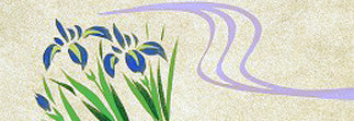 Hand-painted fan screen. A lovely group of iris off to the left, newly sprouted.