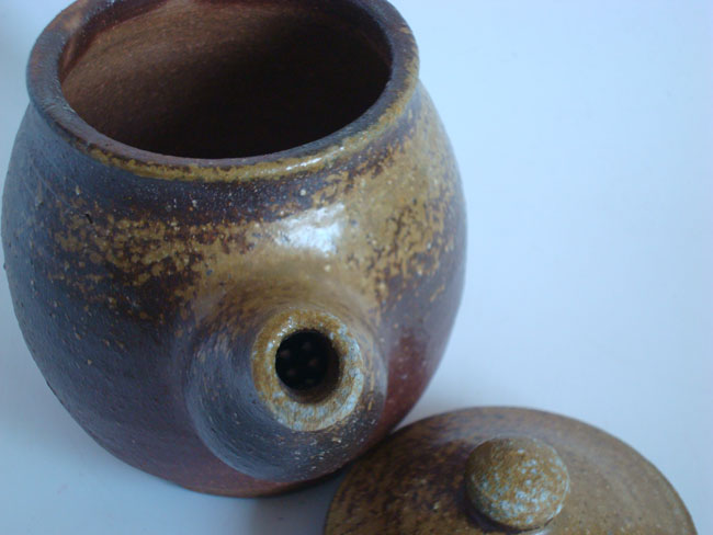 This one off earthenware teapot is the work of Lithuanian potter Beatrice Keleriene working from the kiln of her partner Rikio Hashimoto in rural Shimane Prefecture in south western Japan.
