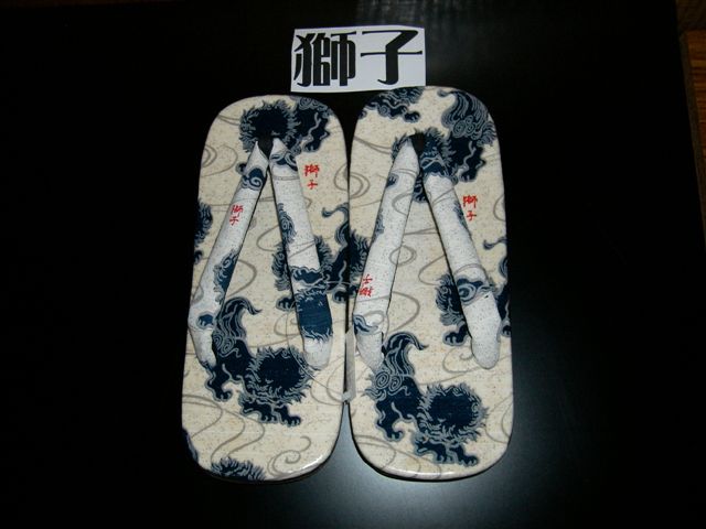 These sandals feature the dreaded festival dragon used to scare children and delight adults.