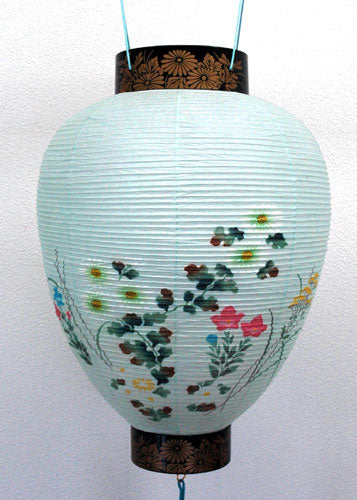 This ornamental Japanese paper lantern is traditionally hung for the summer Buddhist All Souls (Obon) Festival.