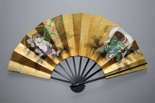The front of this fan features the gods of wind and thunder, the reverse is a four-season motif.