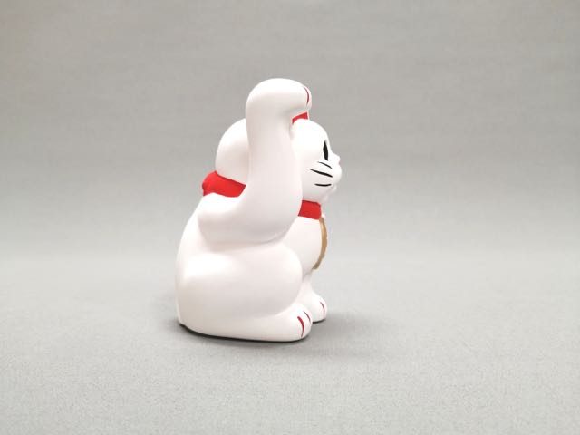 Happy Maneki Neko White (Right Hand). Each piece is individually hand-painted.