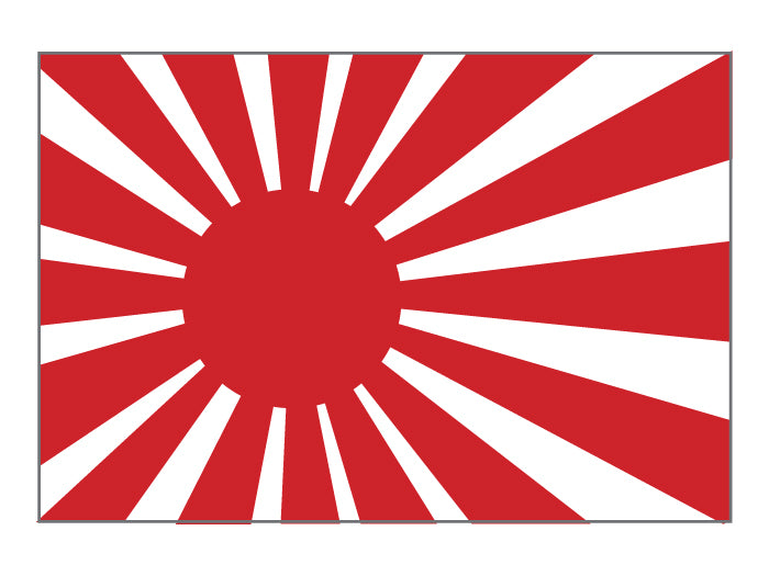 Japan Rising Sun Flag Stickers; Pack of 3 x stickers showing the distinctive Japanese Kyokujitsu-ki flag.