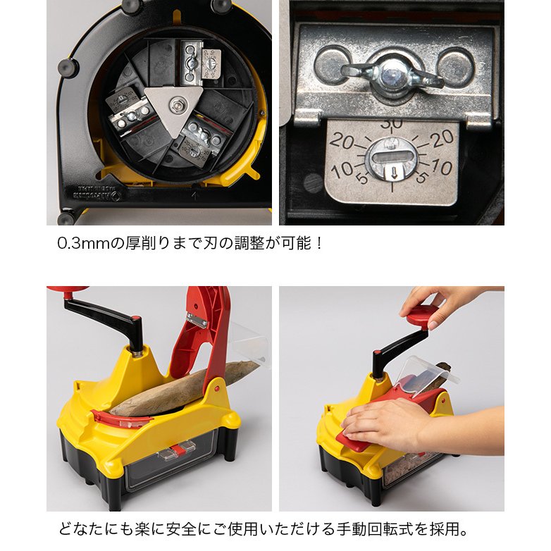 This handy device is ideal for general households and small restaurants. Now sadly discontinued. Please see this alternative katsuobushi shaving machine.