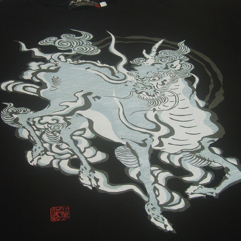 Chief of Animals - KIRIN is an imaginary animal that is said to be the chief of animals, and appears only in times of peace. It has the face of dragon, and the body of a deer with scales, and a cow's tail and horses' hooves, and its character is said to be very, very kind. Poetry on the back means that ‘It is as warm as the sun when approaching, and like a cloud of grace when viewed from a distance’. This is the old poem about the king who governs a peaceful world. Enjoy chic colors that are conscious of traditional colors, and beautiful KOMON design! (fine patterns expressing the scales).