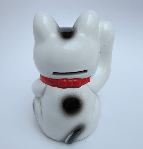 Koban Maneki Neko Kaiun White. A koban is a gold coin from ancient Japan. This attractive maneki neko beckoning cat from Tokoname is a good luck charm for your prosperity and happiness, with its left or right arm beckoning.