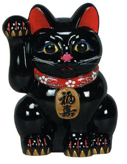 The traditional lucky black maneki neko beckoning cat design. Helps brings luck into your life.