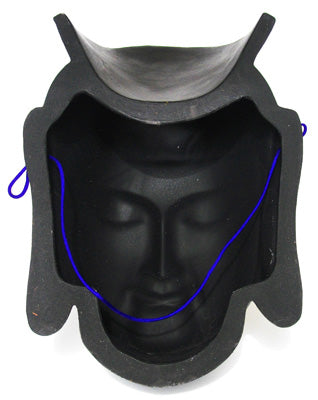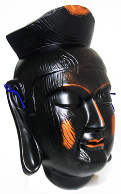 This ceramic mask is a copy of the "Miroku Bosatsu" Buddhist statue in Koryuji Temple in Kyoto, a very well known statue in Japan.