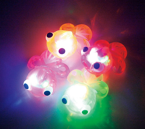 Each fish has a non-replaceable button-type battery with a 3-pattern light sequence.