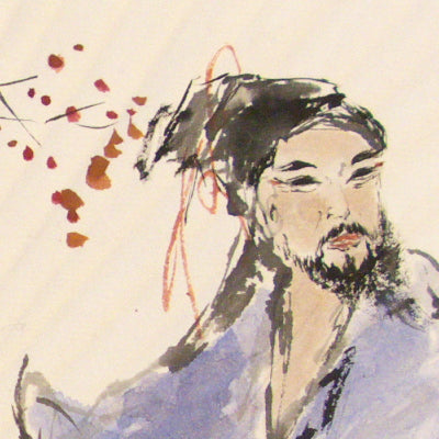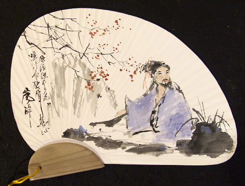 As in the West, in China and Japan too, the poet has long been a figure to be revered - at least in older times. Tokyo's suiboku (Chinese-style watercolor) painter, Ransui Yakata, pays tribute to the figure of the poet with this beautiful non-folding fan.