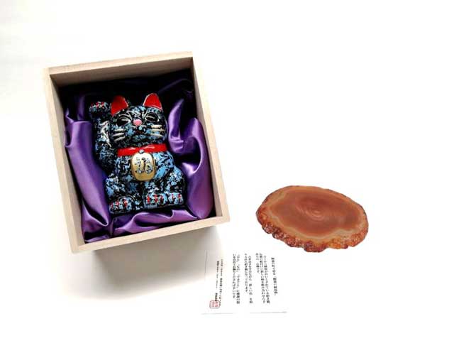 Premium Maneki Neko Blue. This product is made and handpainted in Seto, Aichi Prefecture, Japan.