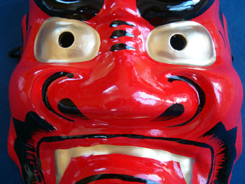 Known as aka oni in Japanese this mask can be worn or used as decoration.