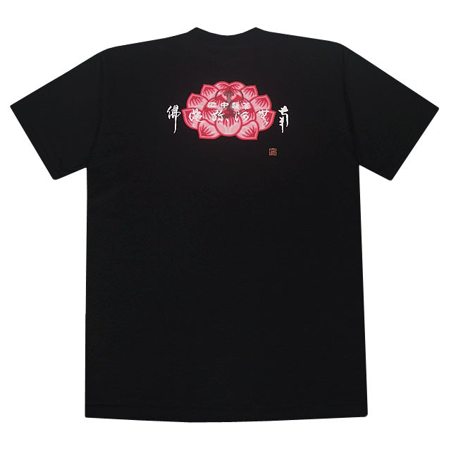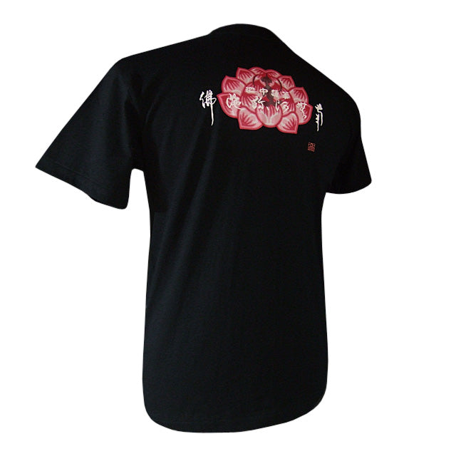 Renka. The design of this T-shirt is of a lotus flower in full bloom.