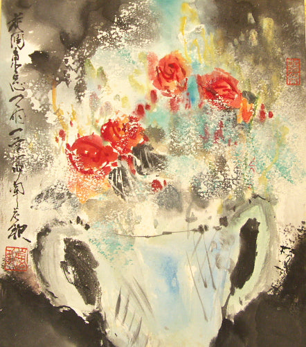 In "Roses," the suiboku (watercolor) artist Ransui Yakata brings to this passion the delicacy of watercolors that are nevertheless applied with the kind of verve usually reserved for oil paintings.