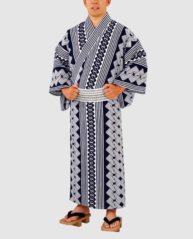This yukata is similar in style to one you may have worn in a stay at a Japanese ryokan or onsen.