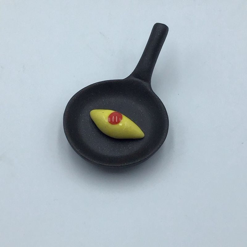 Frying pan with fried egg 6.7 x 4.3 x 2.1 cm(H)