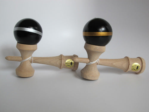 These new Shin Fuji kendama come with silver or gold stripe on a black ball.