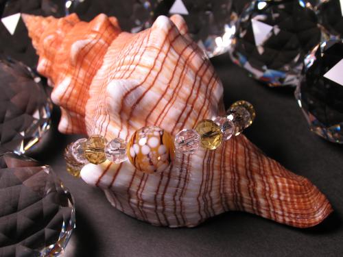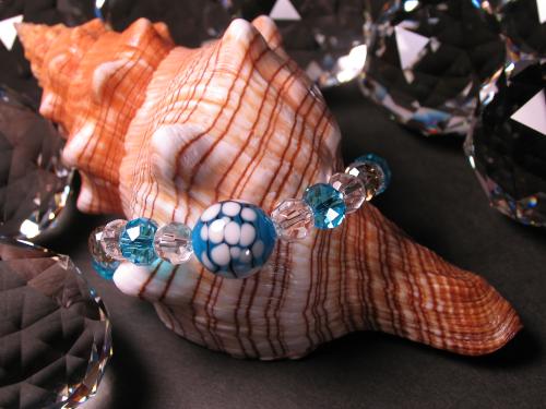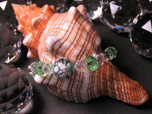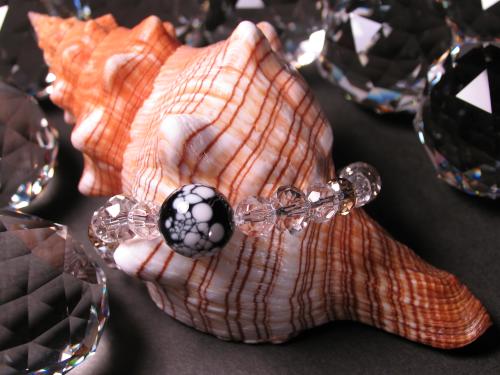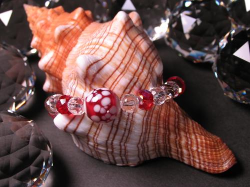 Snow Sparkle is a line of pure glass bracelets. Fun splashes of snowy white over a variety of rich, fruity-colored backgrounds.