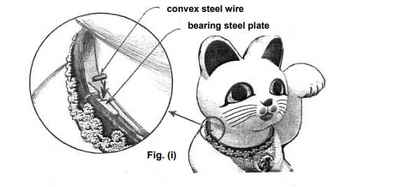 Small convex steel wires on both sides of the neck must fit into the recesses inside the collar, as shown by the arrows in Figure (i). Make sure that they rest on the bottom of the indentation in the bearing steel plate.