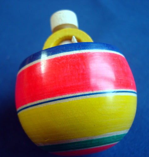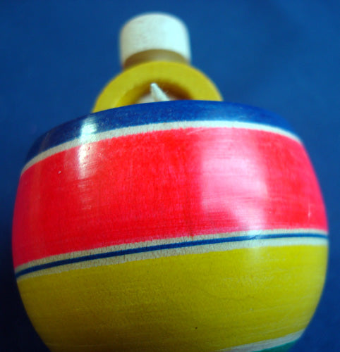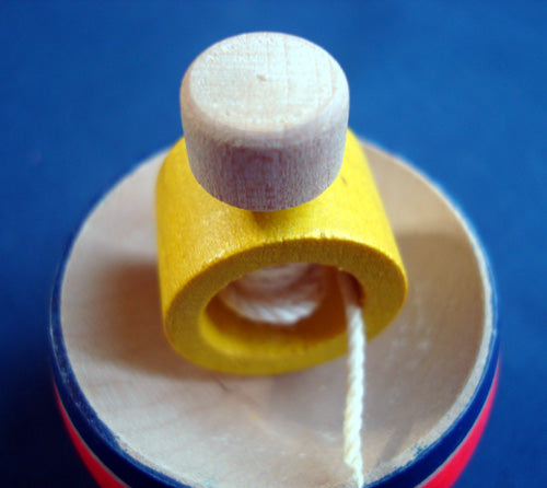 String Pull Reversible Koma - Pull the string in the yellow circle at the top of this reversible spinning top and watch it stand on its head.