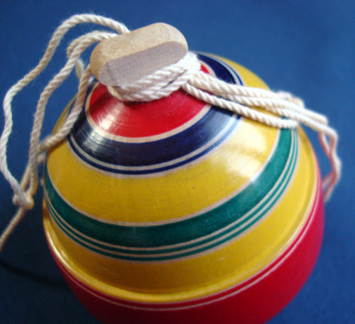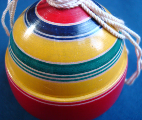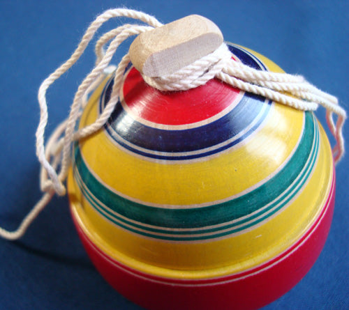 These light, colorful bulb-shaped spinning tops are called ito-tsururi in Japanese and are spun with a cord.
