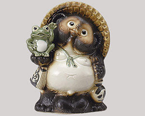 Tanuki Figure with Frog - Tanuki appear frequently in Japanese folklore and are a much loved character. Tanuki figures make for excellent interior or garden decorations to give a Japanese feel to your space.