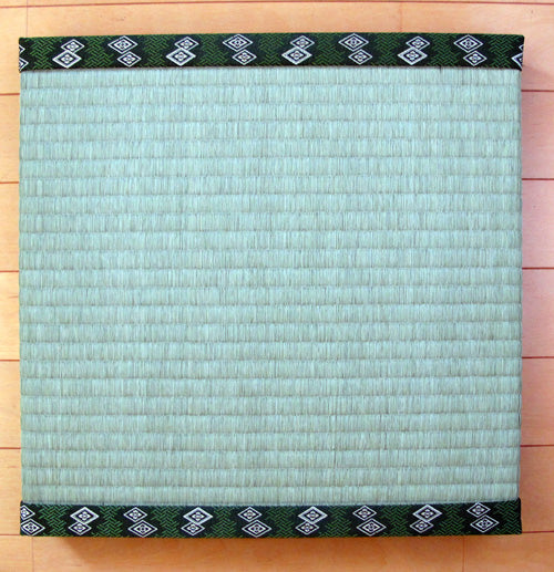 This tatami square is a covering of high quality goza sewn with cotton thread onto a light, durable polystyrene base. The “2-Eri” in the title refers to the fact that two sides are covered by a beautiful cotton eri or edge.
