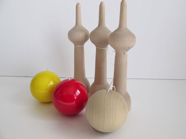 The second generation tower ball is available in six colors: plain wood, yellow, green, red, blue and light blue.